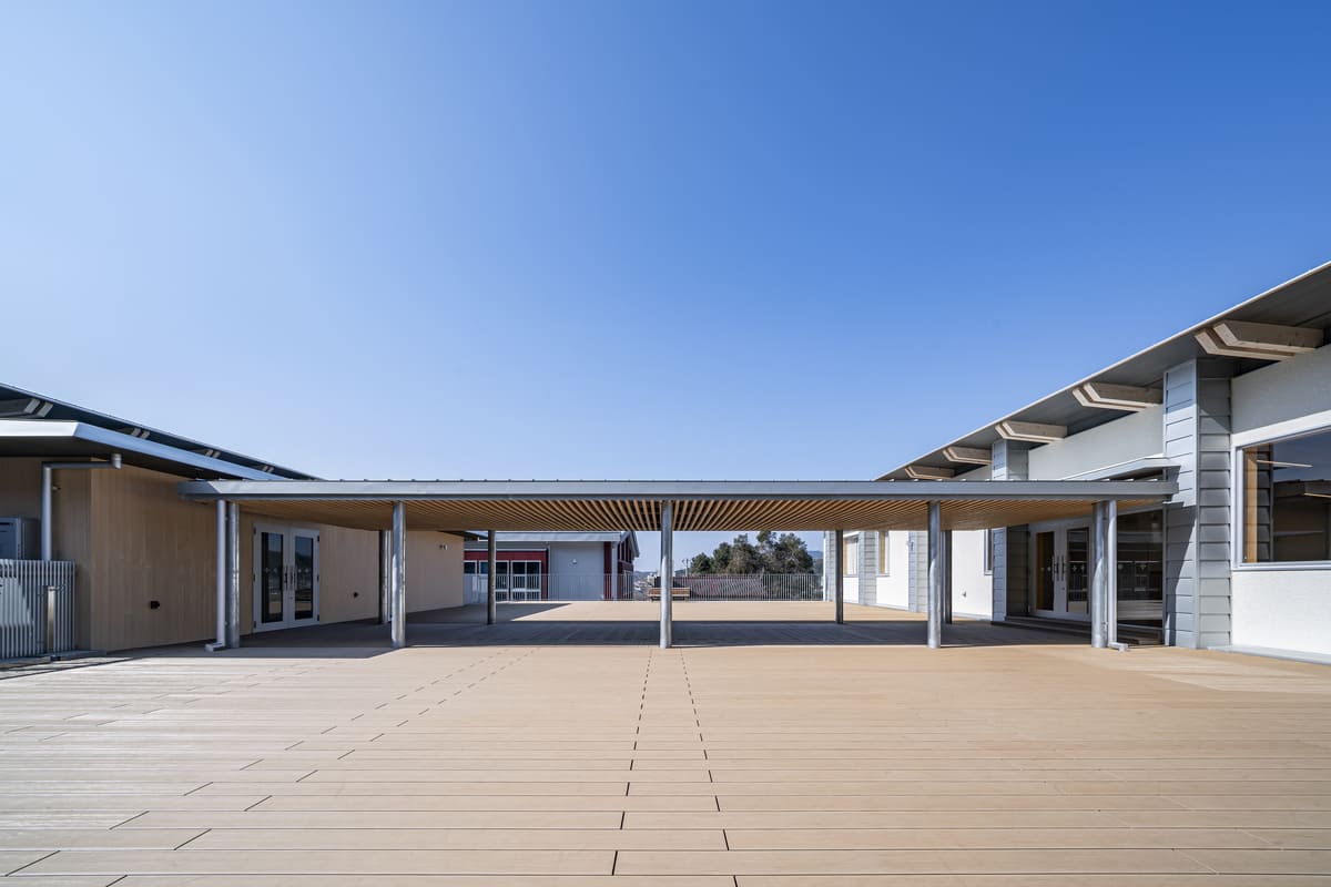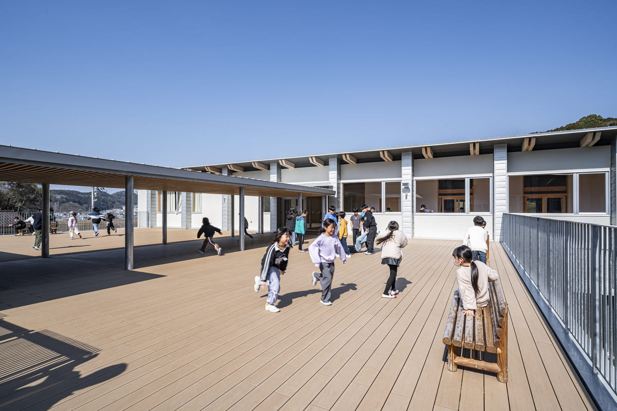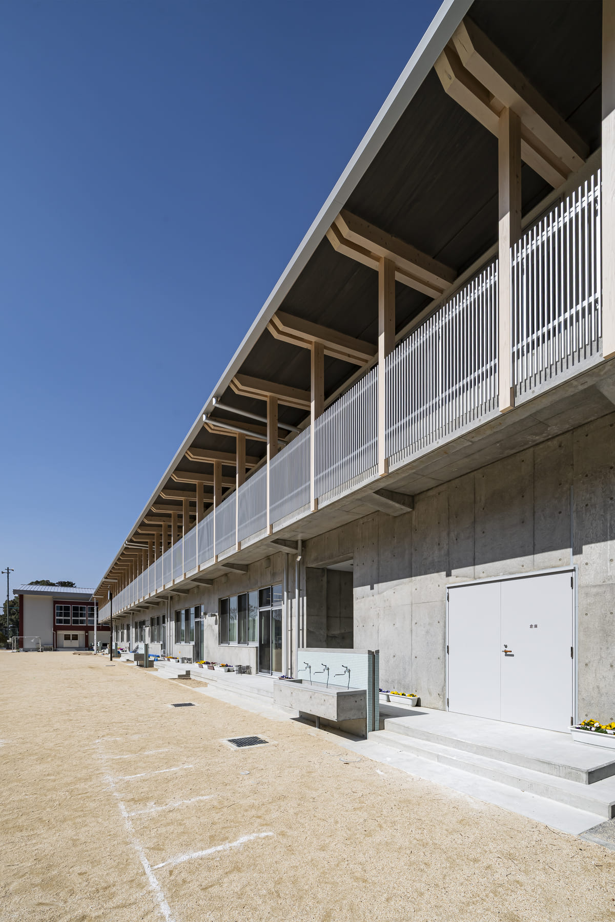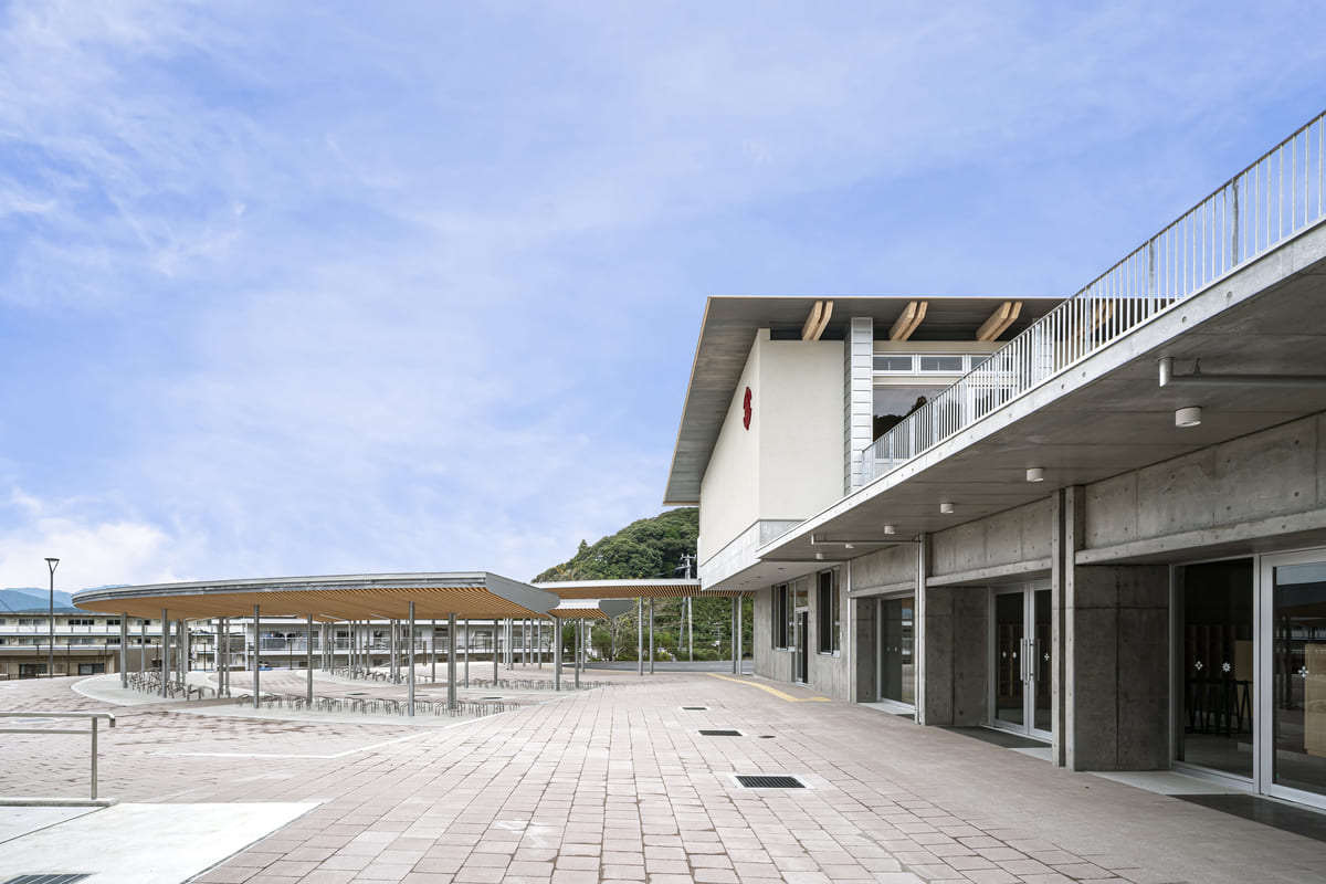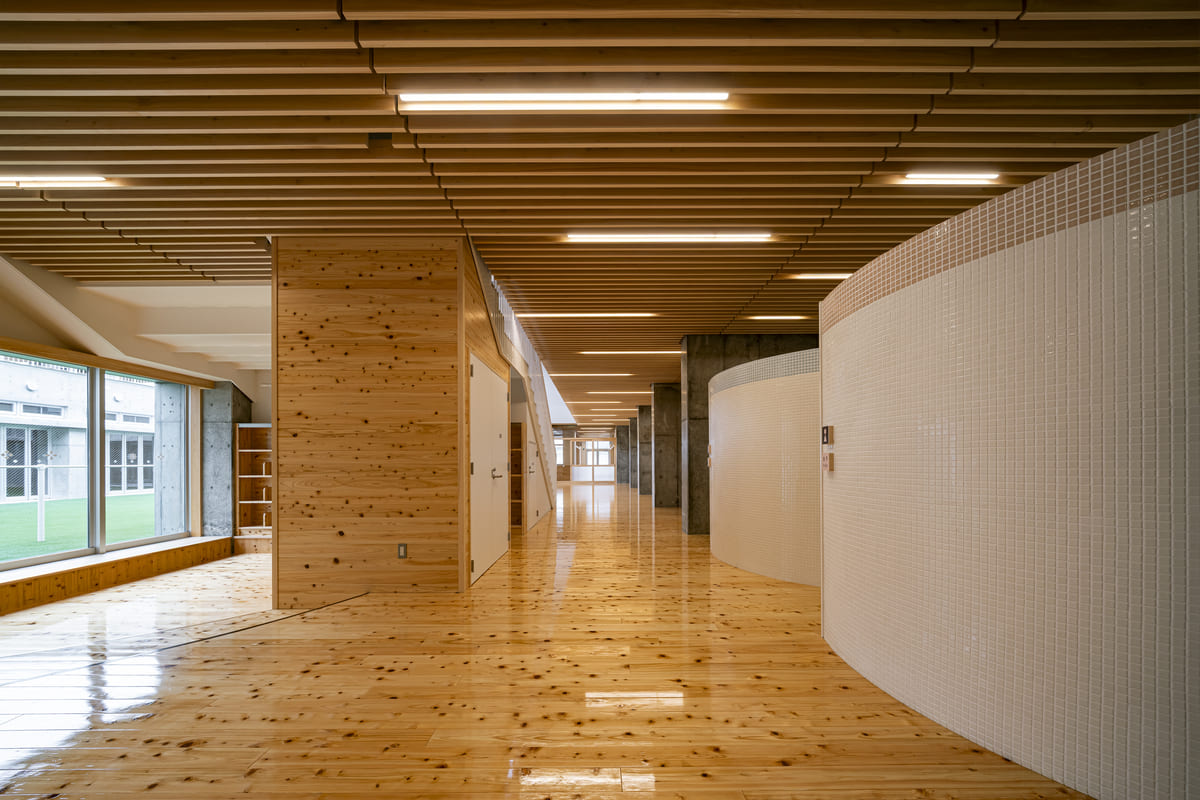 新校舎は、日常の教育環境を支えると同時に、災害時には避難所として地域を守る役割も担う。RC造と木造、それぞれの特性を適材適所に活かしたこのハイブリッド構造は、安全性と木の温もりを併せ持つ学びの環境を実現している。地域の木と技術によってつくられたこの校舎は、これからの時代の教育と地域の安心を支える「100年学舎」として、静かに未来を育んでいく。