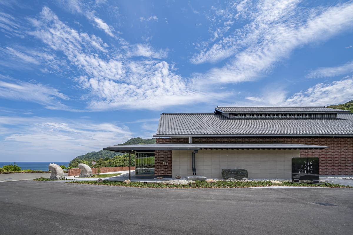 重心の低い軒先と陰影のある屋根面が、久礼の町並みや既存施設との風景的文脈に応答する。